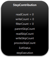 StepContribution 도메인의 구조 위의 그림을 순서대로 적은 것인데, StepExecution의 내용과 거의 동일하다.