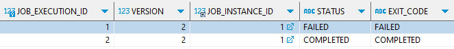 처음 실행했던 JobExecution은 FAILED로 실패한 상태이고, 방금 실행했던 JobExecution은 COMPLETED 된 모습이다.