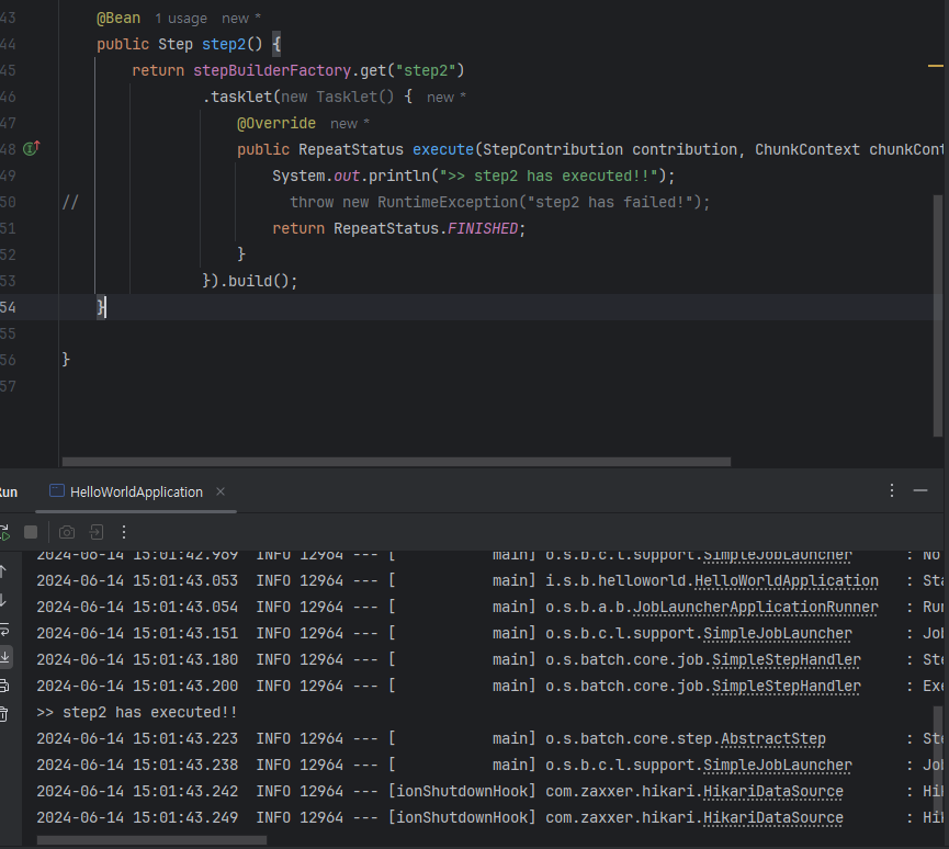 만약 Step3가 다음 Step으로 등록되었다면 Step3는 StepExecution이 생성되지 않았을 것이다.